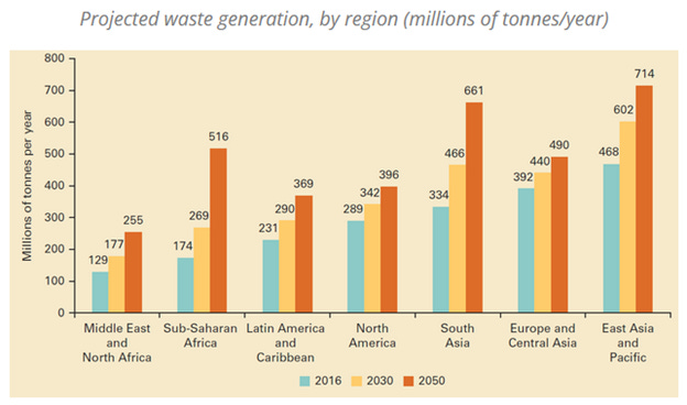 As global living standards improve, consumption rises along with them. That means worldwide waste is forecast to reach 3.4 billion tonnes by 2050, more than doubling the pace of population growth.